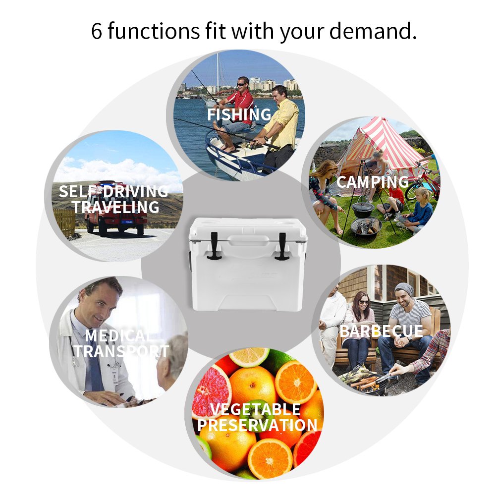 Whether you are packing freshly caught fish, keeping drinks cold on a beach day, or preparing for a camping weekend, this 25QT Heavy Duty Rotomolded Ice Chest is built to perform and made to last. Strong, reliable, and made for adventure—your outdoor companion for every trip.
