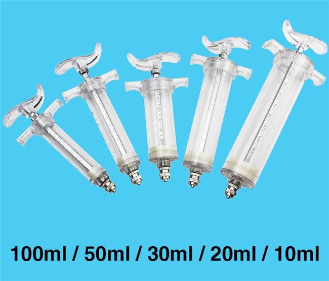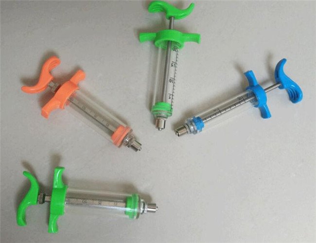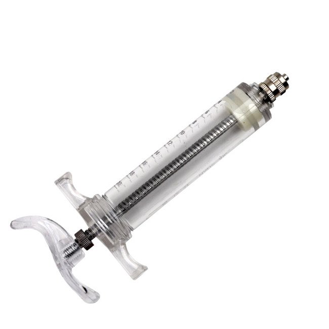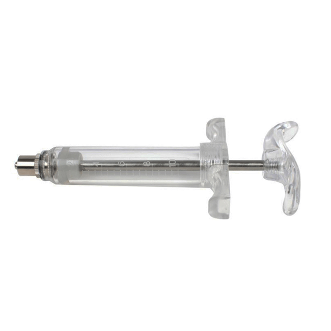 This reusable TPX syringe is used for animal vaccination and treatment injection.