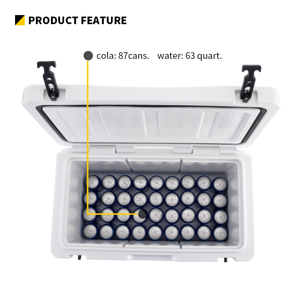 63QT Heavy Duty Rotomolded Plastic Ice Chest – Large Capacity Outdoor Cooler Box for Beach, Picnic, Camping, Fishing & Marine Use