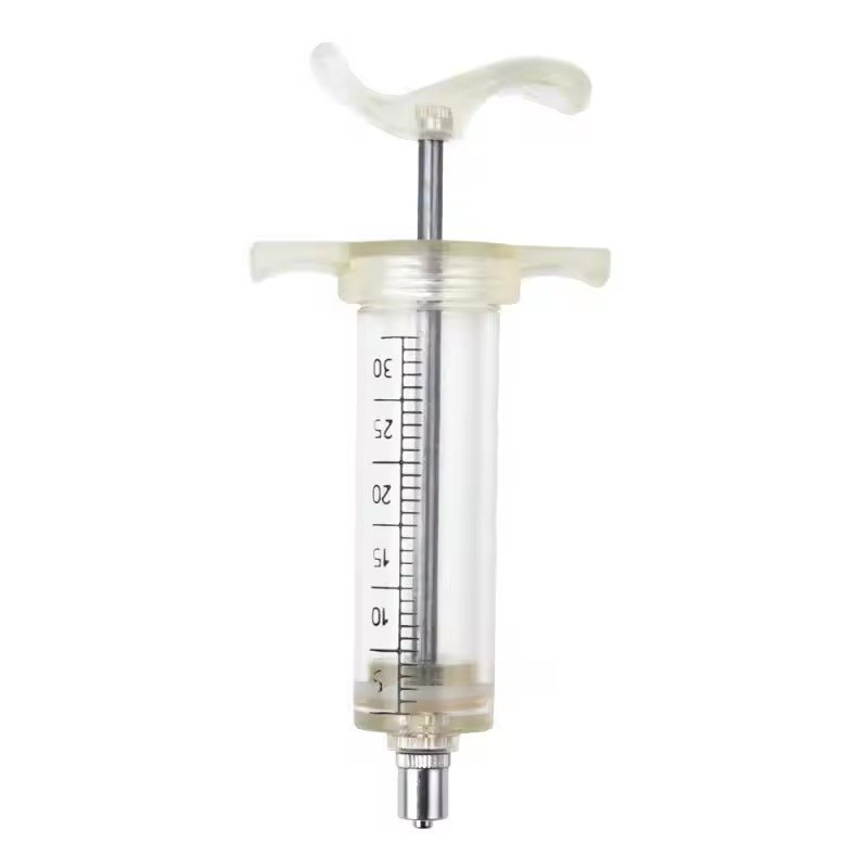 This reusable TPX syringe is used for animal vaccination and treatment injection.
