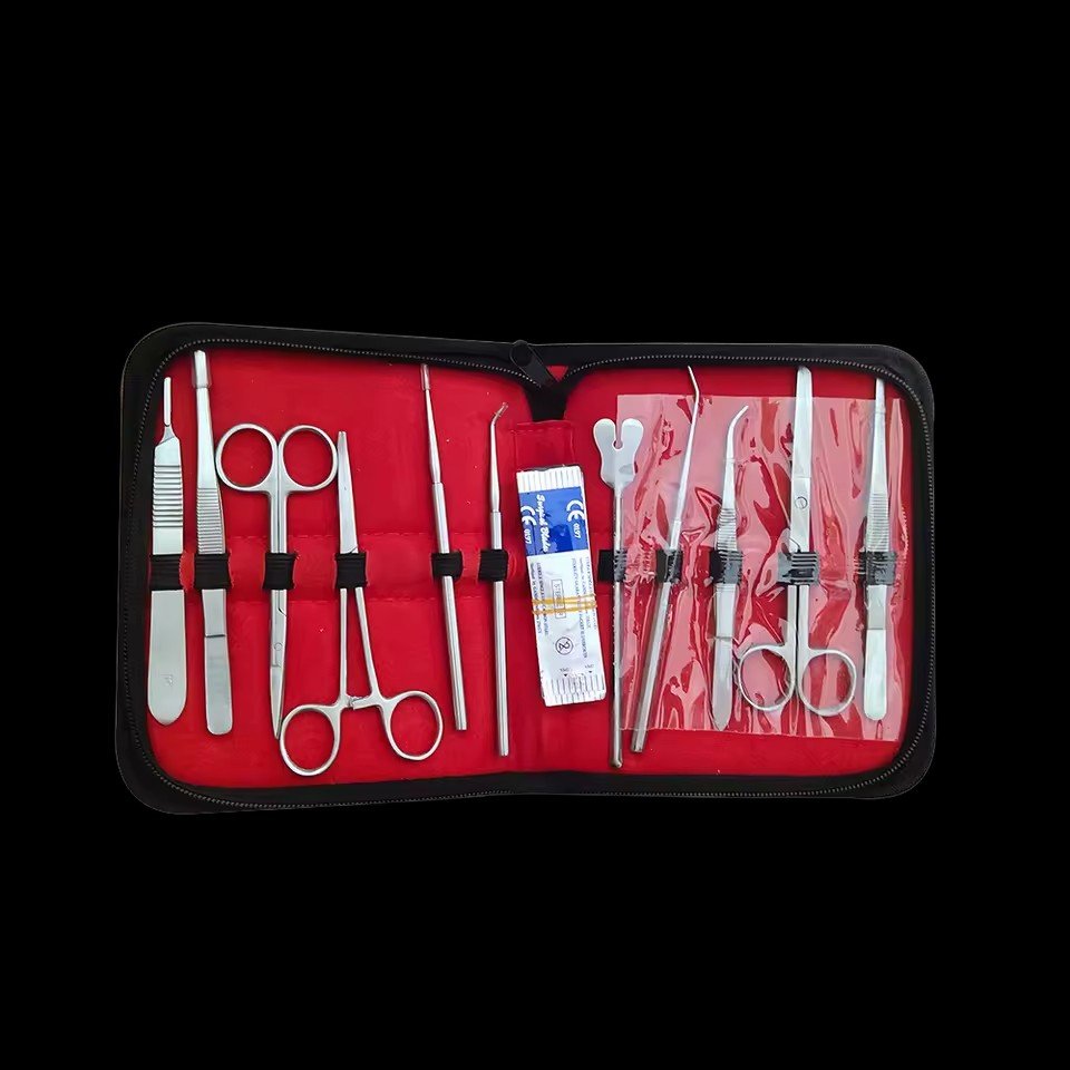 The Stainless Steel Anatomical Dissection Set is a professional veterinary surgical instrument kit designed for animal anatomy, laboratory study, and dissection procedures.