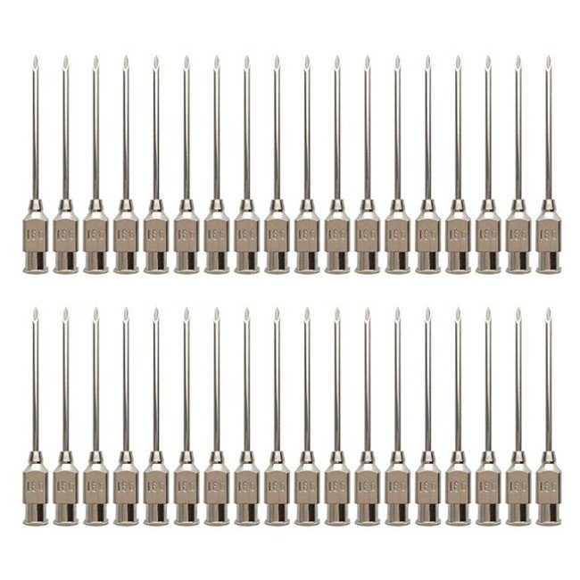 This pack contains:24Pack 16G 16-40mm,with luer lock connector make the needle will not fall off.With a needle dredging device, it will not worry about the needle blockage.